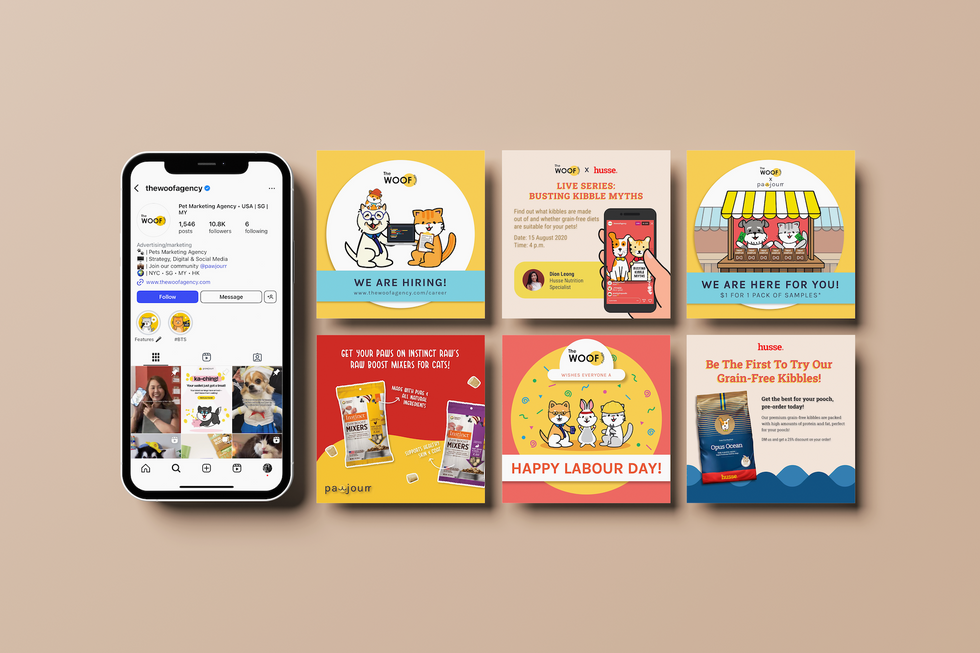 At The Woof Agency, I interned as a graphic designer, creating social media content for both the agency and their clients: Husse, Instinct Pet, Bronco Pet Food.